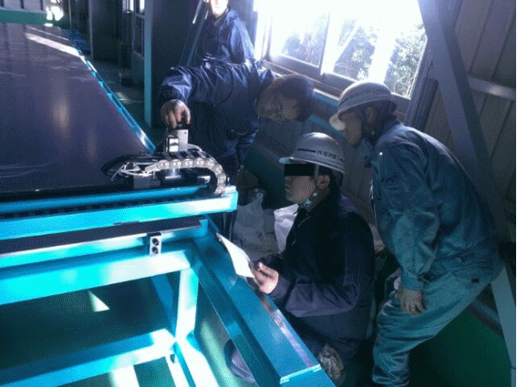2月21日 操作説明を真剣に聞かれる機械担当の大江様。