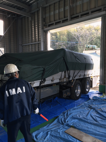 アマダさんのノコ盤も同じ日に納品でした。お互いクレーンを譲り合いながら設置しました。