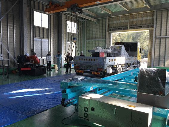 位置決めとレベル出しを行い、電気・エアーを配線後にテストランをしました。